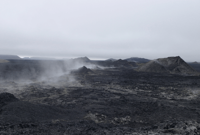 Elämä syntyi luultavasti tuliperäisellä seudulla, kuten fumarolikentällä, niin että sen synty-ympäristö oli ainakin ajoittain kuiva (Kuva: H. Lehto)