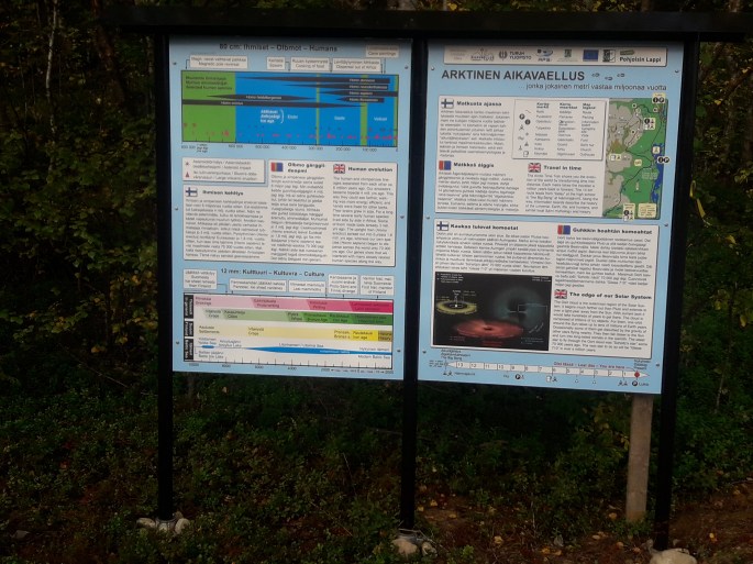 Reitin ensimmäinen taulu Utsjoen koulun takapihalla kertoo paneettamme viimeisimmästä miljoonasta vuodesta: oman lajimme kehittymisestä, planeetan viimeaikaisista jääkausista ja ilmaston muutoksista